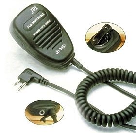 These high quality speaker microphones from JDI are so handy you'll never want to use your radio without it again! With this speaker mic attached to your lapel you are free to clip your radio on your belt, put it in a backpack, etc. without missing any calls and without having to pic it up to talk. The high quality electric condenser microphone gives your 2-way radio superb crystal clear audio and the built-in earphone jack let's you plug in an optional external ear piece for private listening. The rubberized PTT (Push To Talk) thumb switch is perfect for heavy usage and the 8-position swivel lapel let's you position and secure the microphone to your shirt comfortably. The coiled cord stretches easily and will never tangle. Made of hi-impact plastic & water resistant, these units are perfect for indoor or outdoor use, even in bad weather. JDI speaker mics are also a great accessory for FRS family radios, keeping everyone conveniently connected whether you're backpacking, skiing, biking, hiking, riding, or any other activity that ends in "ing"! SPEAKER UNIT: Speaker Diameter: 36mm; Output level: 83dB; Rated Input Power: 0.5W; Max. Input Power: 1W; Output Impedance: 16ohm. MICROPHONE UNIT: Type of Element: Non-directional electric condenser type; Sensitivity: -58dB; Output Impedance: 1kohm.