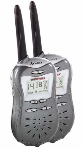 Cobra's FRS 220-2 is a family radio service (FRS) walkie-talkie. The external slide switch allows you to talk on all of the 14 available FRS bands, and it includes 38 sub-bands per channel. And with 500 milliwatts of output power, the Cobra FRS 220-2 transmits as well as higher-end models. With a two- mile range, this walkie-talkie is well suited for most family outings.